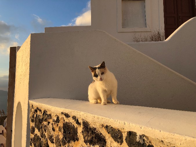 우리는 피라마을에 있는 호텔에 묵었는데 이아마을보다 편의시설이 많아서 그나마 다행이었습니다. 원래 계획은 렌터카를 빌려 섬 전체를 구경하려 했으나 색다른 추억을 만들기 위해 피라마을에서 이아마을까지 트래킹을 했습니다. 약 3시간에 걸친 트레킹은 산토리니 섬의 환상적인 화산지형을 직접 체험 할 수 있는 인생에 단 한번 할 수 있는 체험이었습니다. 절벽 옆으로 걸어가면서 아찔한 풍경도 구경하고… 그런데 왠 바람은 그리도 심하게 불던지… 바람의 신이 우리의 얼굴과 몸을 엄청나게 스쳐간 듯 합니다. 길에서 만나는 동물 친구들도 소소한 즐거움을 가져다 주었습니다.
