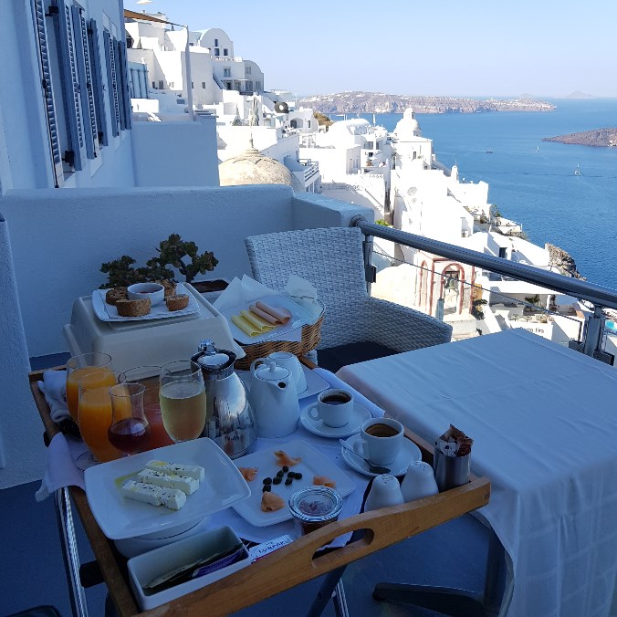 산토리니 호텔의 조식은 방으로 직접 아침마다 들고와서 차려주는데 정말 감동이었어요.