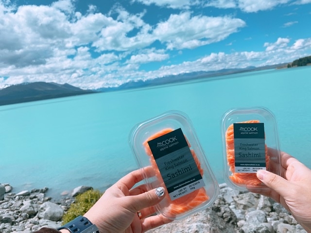 푸카키호수에요 ㅎㅎ 여기도 물이 말도 안되는 색을 가졌네요 ㅠㅠㅠㅠ거기에 핵맛인 생연어 !!!!!!