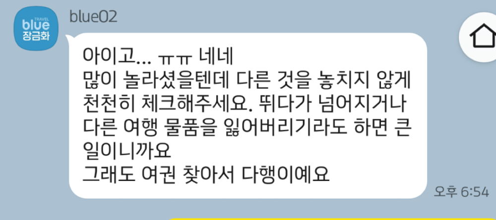 그때 멘붕와서 장금화차장님께 막 여권을 잃어버렸고.. 다음 비행편을 놓치면 어떻게 해야하나요