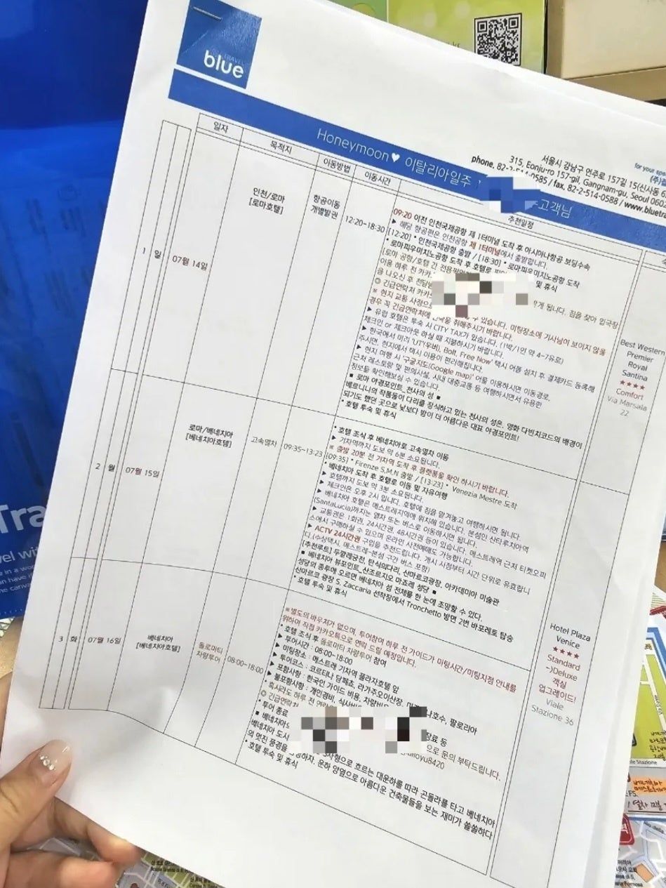 일정을 만들어준 젊은 여행사 블루로