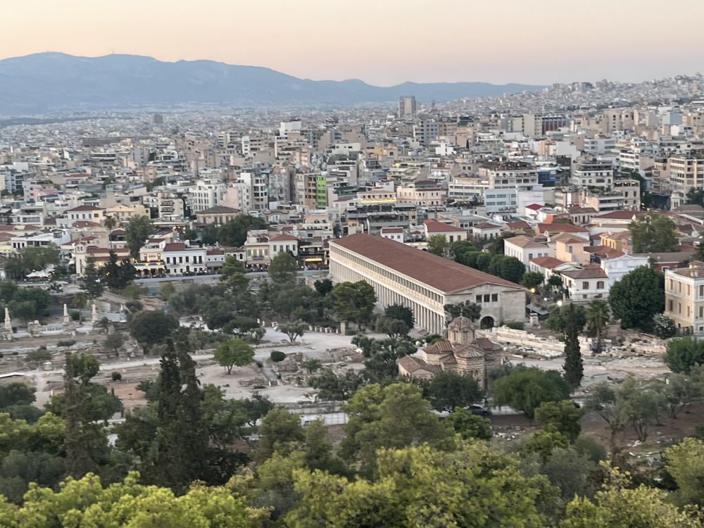 아테네에 도착해서 호텔까지 무료 픽업서비스로 편안하게 도착했고 호텔은 정말 아테네의 중심에 위치해서 어디든 걸어서 갈 수 있는 최적의 장소로 정해주셨더라구요. 첫날은 피곤해서 밥먹고 쉬다가 아크로폴리스가 보이는 아레오파고스 언덕에서 일몰을 보았어요