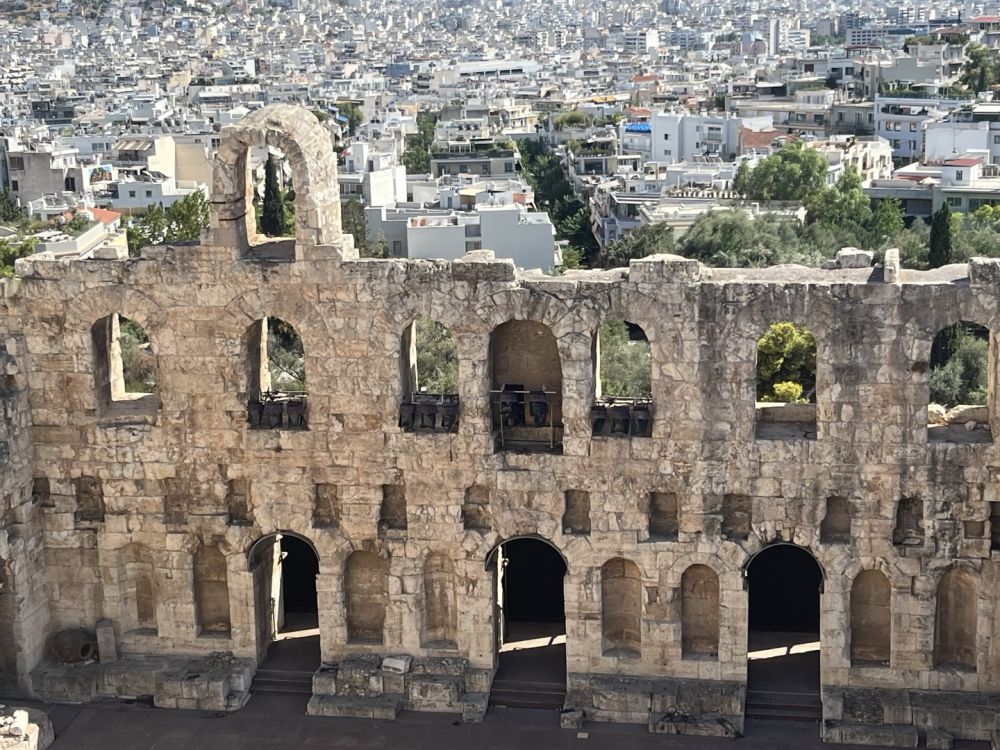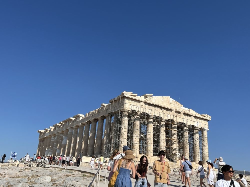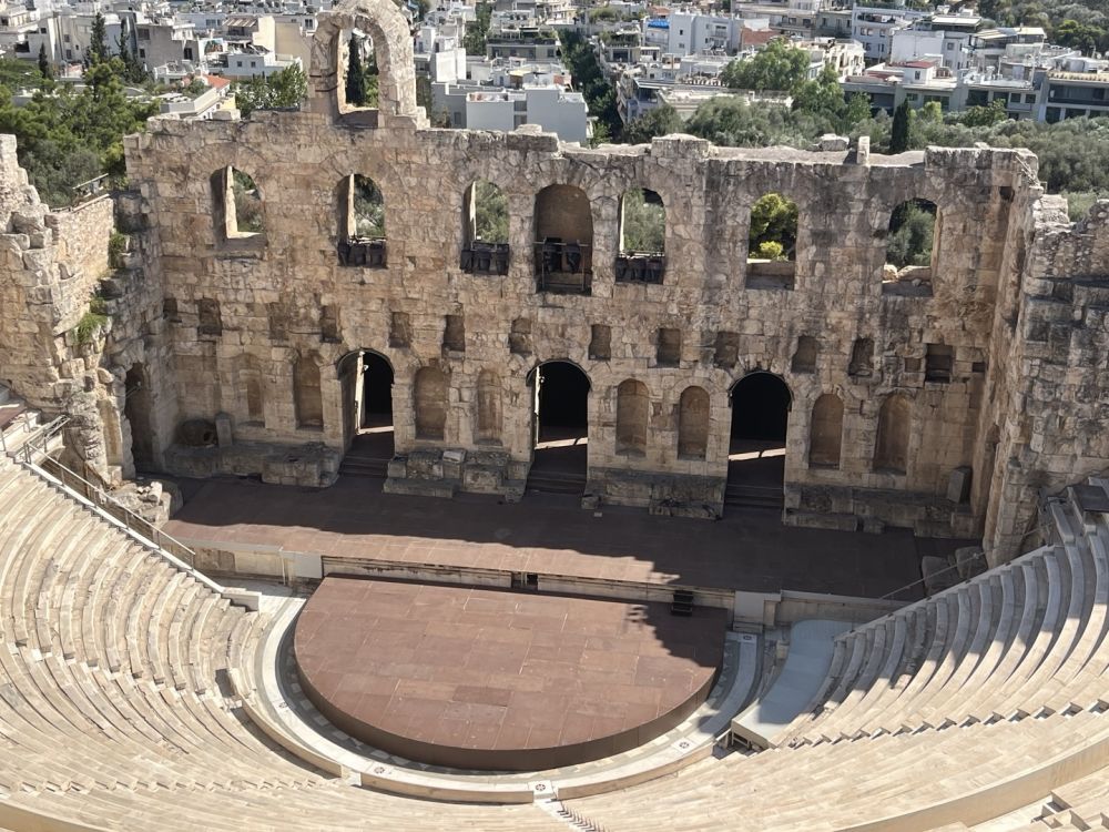 그 다음 날에 아침에 하니아 공항에서 아테네로 이동해서 쉬다가 4시에 예약된 아크로폴리스에 갔는 데 너무 더웠어요. 반드시 1인 1워터가 필요하더라구요. 아크로폴리스 안에는 물자판기가 있는 데 동전만 되요. 그리고 물만 반입가능합니다. 저희는 그래서 입구 앞에 있는 가게에서 오렌지주스를 다 마시고 얼음물을 사가지고 입장하였습니다. 너무 웅장하고 특히 저는 아티코스음악당이 멋있더라구요. 7월에는 저녁에 이곳에서 음악회도 했다고 합니다. 저도 가고 싶어 알아 보았는 데 8월 저희 일정에는 없었어요. 4시 관람인데도 덥긴 덥더라구요.