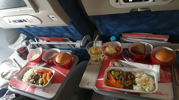 비행기 자리도 창가쪽으로 잘 예약해주셔서 편안하게 다녀올 수 있었습니다~ 체코 여행사였는데 기내식이 편도 기준으로 2번 나오더라구요. 약 14시간의 비행으로 체코 공항에 도착하니 저희를 배웅하러 나온 운전 기사님과 만나 인사를 나누고 숙소로 편안하게 승용차를 타고 이동하였습니다.